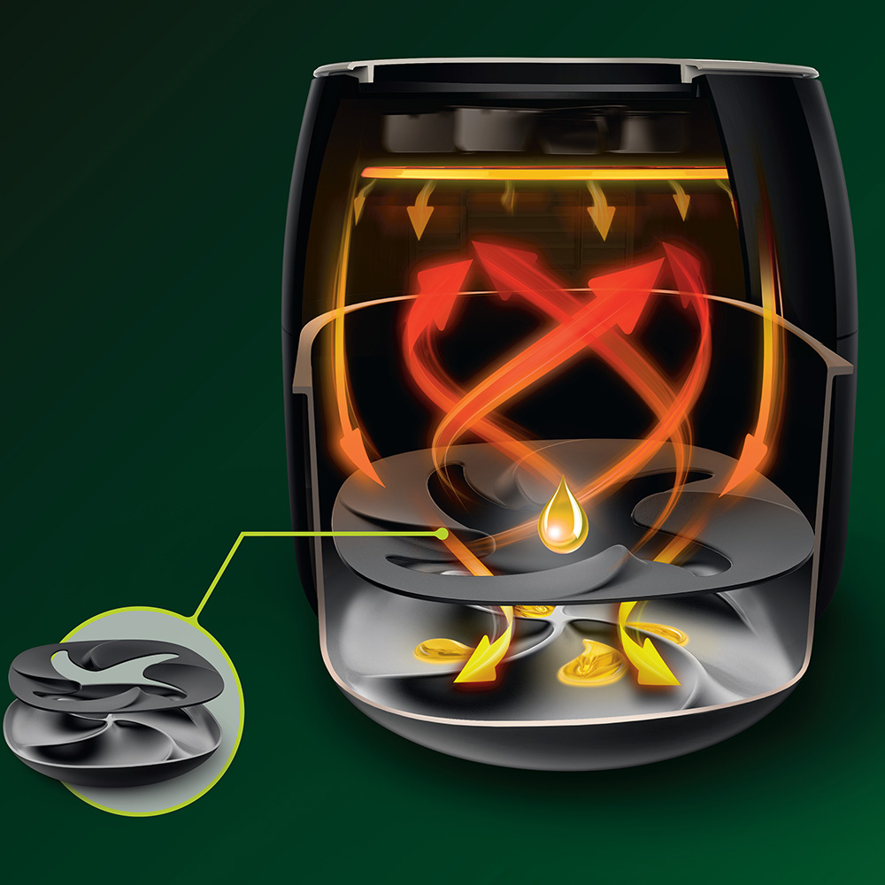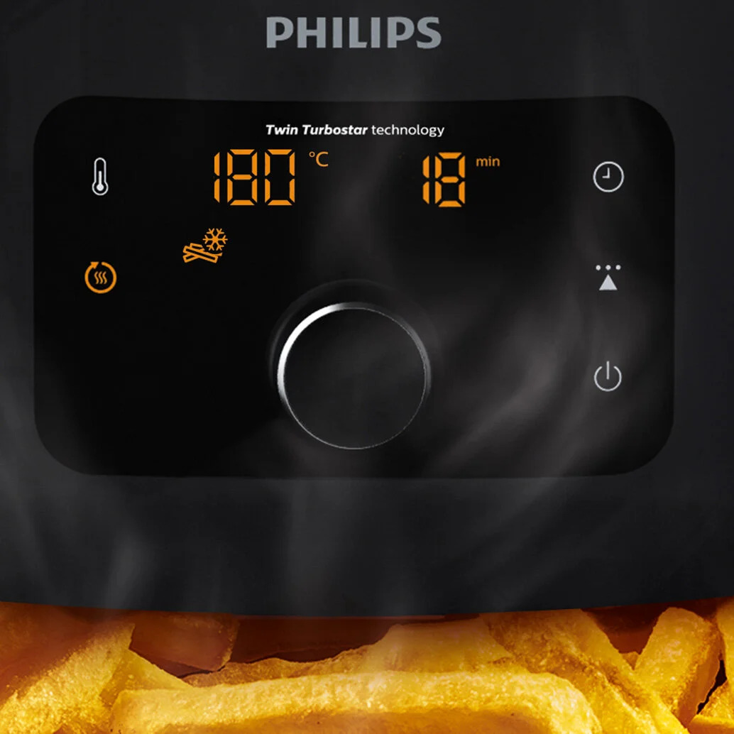 Philips Airfryer XXL, en sevdiğiniz yiyecekleri çok az yağ ile veya hiç yağ olmadan kızartır. Yeni Twin TurboStar teknolojisi, yiyeceklerin fazla yağdan arınmasını sağlayarak kendiniz ve aileniz için kızartma yapmanın en sağlıklı yolunu sunar.